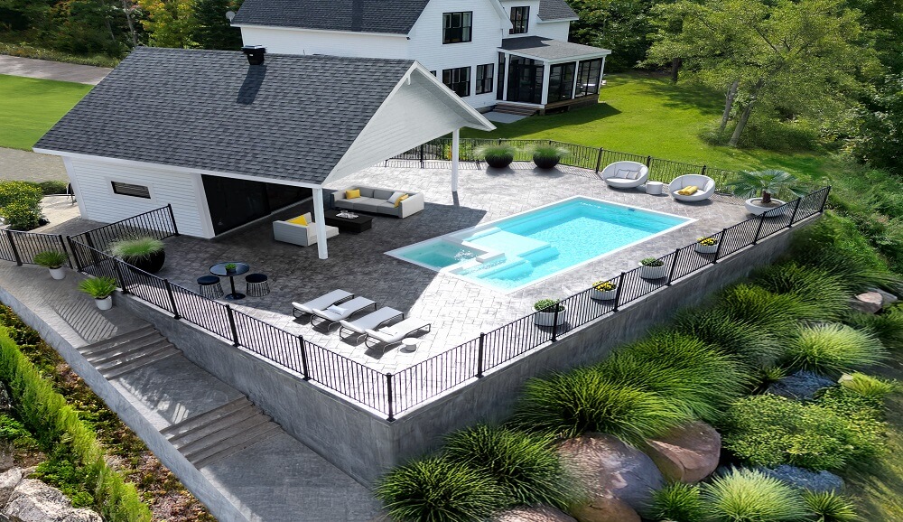 De style avant-gardiste, La F-30 possède tout ce dont vous pouviez rêver! Retrouver la combinaison parfaite avec son spa à débordement, ainsi que sa plage de détente pouvant accueillir deux chaises longues.